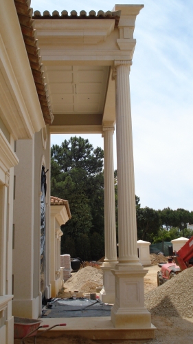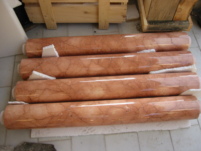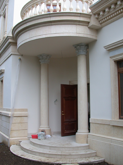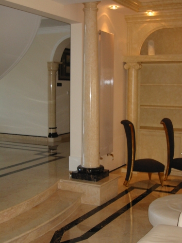 Colunas, degraus e pavimento em Lioz e Portoro |